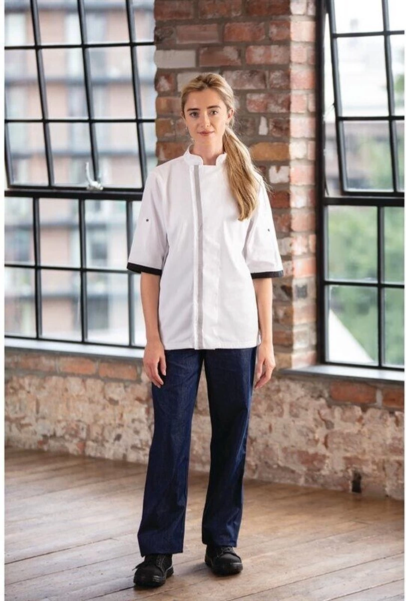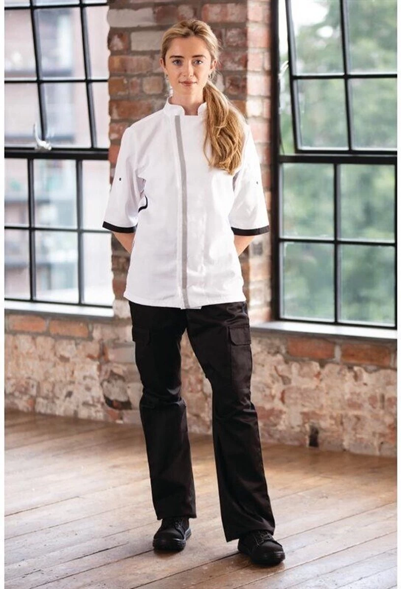 - Remarques : Ventilation et refroidissement des panneaux Cool Vent. La coupe ajustée offre un look professionnel et sophistiqué. Conçu avec élégance. Poche pratique sur la manche gauche pour garder les accessoires à portée de main. Livrée blanche classique et élégante. Coupe unisexe. Manches courtes pour un refroidissement supplémentaire. Matériau polycoton solide et durable. Avec clip de tablier pratique à l’arrière. La manche peut être pliée avec une fermeture à bouton-poussoir. Le polycoton est facile à laver et sèche rapidement